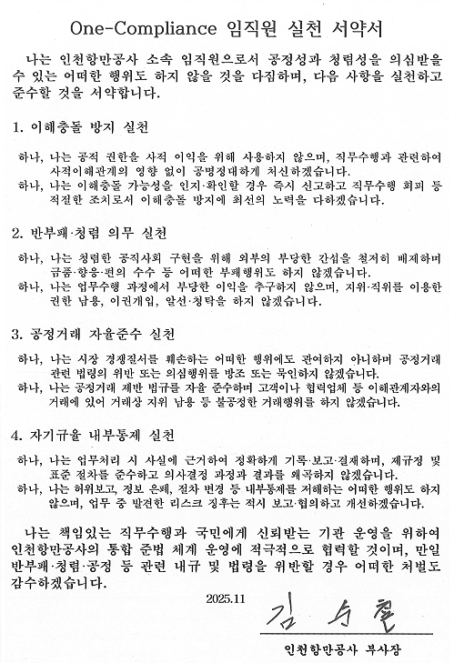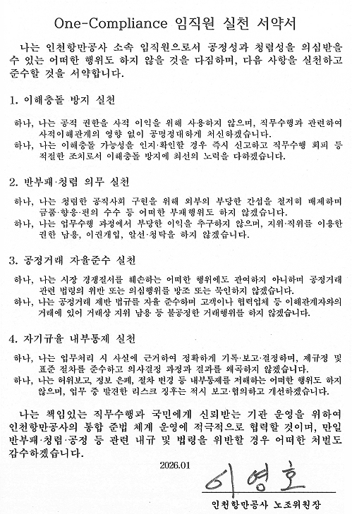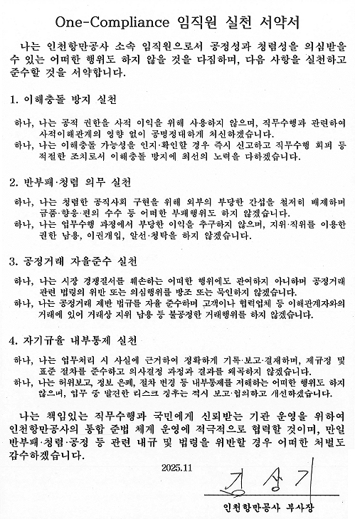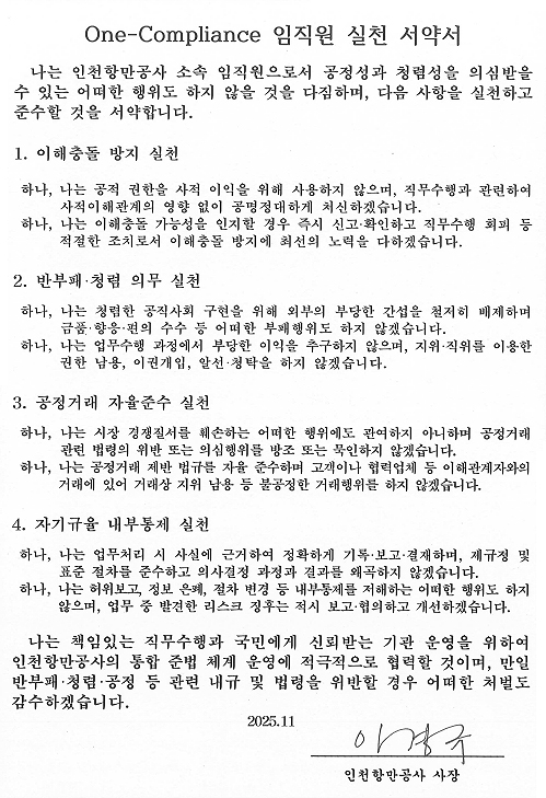 I pledge to actively cooperate with Incheon Port Authority’s compliance system and accept any disciplinary measures should I violate anti-corruption, integrity, or fair trade regulations.